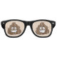 These funny poop emoticon glasses features smiling poo on a light brown background.
