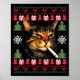 Funny Smoking Cat Meme Ugly Christmas Sweater For Poster