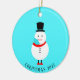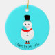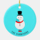 Funny teal Christmas ornament to commemorate the of quarantine and face masks featuring a retro Snowman with his face mask off. On one side you can personalise the text "Christmas 2022" and on the other side you can customise with a first or family last name.
