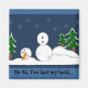 Cute snowman magnet. Little snowman in need of some help! Trees and snow in the background on a starry night.