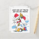 A drawing of a snowy owl dressed up as Santa Claus bringing treats for the good kids. Bad kids? Will go right into Santa's belly. Yum! Get this postcard now! It'll be a perfect gift for Holiday season!