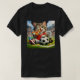 Funny Soccer Cat Eating Pizza Cartoon Design T-Shirt