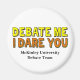 Debate me, I dare you magnet. A confident quote by an opinionated person who can argue their way through any oration discussion or competition. Cool bright yellow and orange text on these orator humour magnets for a high school, college or university speech and debate team. Have the confidence that you will win any argument.