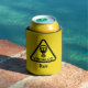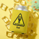 Funny yellow can cooler printed with a man in a gas mask. For the man who loves to cook and eat hot curries, man wearing a gas mask graphic