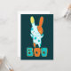 Funny, cute, spooky Halloween rabbit made in seasonal orange, blue, teal, yellow colours. Colourful Boo text. Great design for the Holiday Season.