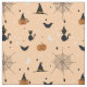 Cut Spooky Halloween fun soft pastel orange pattern composed of white moons and stars, orange pumpkins, spiders, spider webs, black cats, black bats and witch hats. A great design for Halloween party, home decorations.
