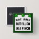 St. Patrick's Day pin featuring shamrock design and funny quote.