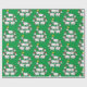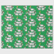 This whimsical holiday gift wrap features hand drawn goats in Santa hats stacked on each other with a gold star on top, on green backround.