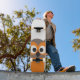 Funny staring cartoon owl skateboard