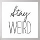 Funny "Stay Weird" hipster humour modern black and white trendy font humourous, trendy inspirational quote dorm poster.