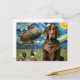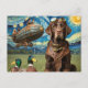 A steampunk Chocolate Lab in a Van Gogh style with some funny AI generated errors in the background