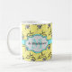 Cute, funny custom mug for physician, phd, graduate, med student, intern, surgeon, nurse, for graduate, for party, for birthday. At the centre aqua blue+grey ribbons and an aqua blue+grey label with name and monogram initial. You can costumize and change the background it.