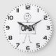 Add charm to any space with this wall clock featuring a cheerful stick figure holding an “OPEN” sign. The clean cartoon design brings a fun and welcoming vibe to shops, home offices, or studios. A great way to keep time while adding character and a little humour to your décor.