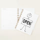 Stay organised with a smile using this spiral planner showcasing a stick figure holding an “OPEN” sign. Perfect for scheduling, goal setting, or business planning, the fun design adds motivation and personality to your daily routine. Ideal for entrepreneurs, students, or anyone who loves creative stationery.