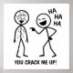 Bring a dose of humour to your walls with this playful and lighthearted poster. Featuring two laughing stick figures—one literally cracking up while the other points in amusement—this design is a visual pun on the phrase "You Crack Me Up."