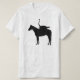 An unusual T-shirt design featuring a silhouette of an ostrich riding a horse. Ideal gift for those with a liking for the surreal.