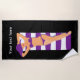 Guys will love laying down next T o this lady and ladies will love the trendy beach girl design created with image of a fashionable d I VA sunbathing on a striped beach towel in pur'le, white, and black. A novelty design for beach or pool outings.