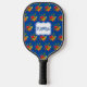 Funny Humourous goofy SuperPickleman flies through the air with his paddle on a dark blue background pickleball paddle design. Sometimes you just need some silliness in your life! Pickleball is supposed to be fun, right? Adults and kids may find this irresistible! Add even more fun by personalising with a name on front and back.
