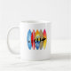 A bright and funny evolution of man surfing design, great for anyone that loves to surf. It shows the evolution of man with a stack of retro surfboards.