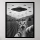 Funny Surprised Ed Cat Selfie With Alien Ufo Cat U Poster