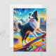Funny Surreal Skateboarding Border Collie Postcard