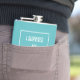 This funny flask will definitely be appreciated by the mother of the bride once the wedding is over! A chic, turquoise colour features a white square frame with the text in the middle. You can change the colour and even the words by clicking "customise it."