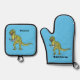 Funny T rex dinosaur illustration Oven Mitt & Pot Holder Set