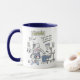 Funny mug for a tattooist. Man is having tattoos done at a tattoo parlour and asks the tattooist what one of the tattoos is. The tattooist says that its the date of his next appointment.