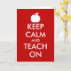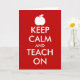 Funny teacher appreciation week greeting cards. Keep calm and teach on greeting cards for teachers. Cute teacher day card for elementary school teachers, coaches and educators. Personalizable keepcalm text and red background color. Create your own keep calm and carry on parody. Education humor. Vintage slogan. Kindergarten / grammar school apple symbol.
