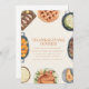 Celebrate Thanksgiving with style and warmth! This beautifully designed invitation features an array of delectable dishes adorning the edges, creating a festive frame for your party details. From golden roasted turkey to vibrant seasonal vegetables, each plate of food adds a touch of charm and mouth-watering appeal. In the centre, there's ample space to include all your event specifics, making it easy for guests to note the time, date, and location of your gathering. Perfect for setting the tone for a memorable Thanksgiving feast, this invitation is a delightful way to invite loved ones to your table.