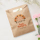 Funny Thanksgiving personalised favour bags that say GOBBLE TIL YOU WOBBLE surrounded by a turkey feather design and wishing HAPPY THANKSGIVING in modern brush script typography and all in shades of autumn colours of brown, orange and yellow gold. Personalise with your custom text or delete the sample text to leave the area blank. ASSISTANCE: For help with design modification or personalisation, colour change, resizing, transferring the design to another product or if you would like coordinating items, contact the designer BEFORE ORDERING via the Zazzle Chat MESSAGE tab or email makeitaboutyoustore@gmail.com.