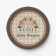 Funny Thanksgiving Plaid Gobble Til You Wobble Paper Plates. Celebrate the Thanksgiving holiday at dinner or a party with these funny paper plates featuring the saying GOBBLE TIL YOU WOBBLE in a plume of turkey feathers in autumn colours, rustic brown plaid or gingham and your choice of text in a suggested modern handwritten script typography (the sample shows HAPPY THANKSGIVING). PLATE OPTIONS: The sample is shown in the 7-inch round--other sizes and shapes or design transfer options to coordinating products are available on the ordering page. ASSISTANCE: For help with design modification or if you would like coordinating items, contact the designer BEFORE ORDERING via the Zazzle Chat MESSAGE tab below or email makeitaboutyoustore@gmail.com.