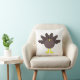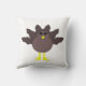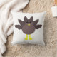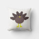 This awesome pillow features a funny cartoon of a turkey with big black eyes, a small yellow beak and tail feathers sticking up. The feet are facing in opposite directions making the turkey look clumsy. This amusing design is ideal for Thanksgiving.
