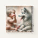 That adorable moment when a baby is face to face with an American Eskimo puppy, their eyes meet, and are oddly fascinated with each other. Perfect for a new mum's Mother's Day gift or birthday gift.
