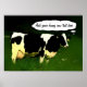This cute Inked cartoon style blotchy milk cow says or thinks whatever you want her to! She looks a little grumpy, have you herd about those udderly mad cows? This one's in a grassy field, with a thought bubble above her head for your own customised text! Use it to tell people to get a moove on, moove over, or moove it! Announce a moove or a round up, or advertise your dairy farm business. Moovelous!