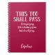 When times are tough, it's important to stay positive and remember that it will get better eventually. It's also important to keep your sense of humour. This notebook says, "This too shall pass. It might pass like a kidney stone, but it will pass." in a pretty typographic style. You can change the background colour if you like. A great gift for encouragement or sympathy. Any of the designs you see in this store can be customised and put on any of the many Zazzle products - just contact me using the "Contact this Designer" link below.