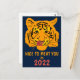 This unique and funny postcard features an image of an adorable tiger - wild big cat - who looks straight at you, yummily smacks its lips, and greets you: "Nice to meat you in 2022". Some footprints of a big or small cat and a text "The year of the tiger 2022" on the back of the card. Blue, orange, coral pink colours on the front. Just for fun and laugh. This design is fully customisable. You can change two images, and you can change or delete four template texts independently. If you need to change the colour of the background, the type, size, colour of the font, or to add some more elements to the card, feel free to use the "EDIT DESIGN" or "PERSONALIZE" (as the case may be) button of the blue colour. It will transfer you to the "Design Tool" where you can do all the customisation. Just be creative, customise and buy one, enjoy, and be happy.