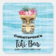 Funny every hour is a happy hour at your own home Tiki Bar. Monogram with bartenders name to create a fun tiki bar themed event. Features a fine looking Tiki with their tongue sticking out. Tropical flowers to remind you of beach island paradise.Aloha and Mahalo
