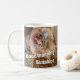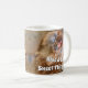 Share the morning coffee humour with an early riser or someone not so fond of mornings. This chicken photo on both sides of the handle also features template text. Personalise the four lines of template text that appear on both sides of the handle, remove the text or edit using the design tool to select a font style, size and colour you prefer.