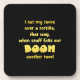 Yellow text conveys a humourous taco-related message on a solid black background. The emphasis on "BOOM" highlights the clever idea of creating an extra taco when fillings spill.