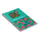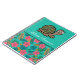 A colourful, tropical, floral pattern covers the lower half of this cute notebook. The top half is a lovely teal with a cute, funny cartoon tortoise standing over a template to add your name to personalise for the perfect gift.