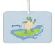 This funny tortoise is surfing the waves pop a bright green surfboard. Reptile fun in cartoon style!