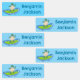 This funny tortoise is surfing the waves pop a bright green surfboard. Reptile fun in cartoon style!
