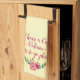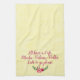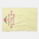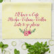 Soft yellow kitchen towel reads I'll have a Cafe-Mocha-Valium-Vodka Latte to go please in pink script.  Below that is a pretty spray of pink flowers.