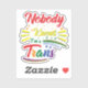 This eye-catching and empowering sticker features the phrase "Nobody Knows I'm Trans" in vibrant rainbow colors, symbolizing pride, self-expression, and identity. A perfect statement piece for Pride Month, LGBTQ+ visibility, and everyday wear, this design encourages authenticity and self-love.