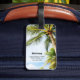 Modern travel luggage tag featuring a tropical summer background, a popular mobile phone with your name on the screen and the words "summer calling". On the reverse you will have your details incase your bag gets lost.