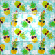 Funny, tropical Christmas pineapples wearing sunglasses and festively decorated with Christmas lights, ornaments and candy canes. This pattern has a pastel blue and white background with Hawaiian hibiscus flowers. This custom fabric is a fun, tropical accent for Christmas crafts. Perfect for any pineapple lover!