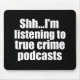 Shh I'm Listening to True Crime Podcasts. Serial killer obsession? This funny podcast listener humour design has got you covered. Shush, don't talk to me while I'm learning about murders or working as a podcaster that tells stories about criminals and criminology.