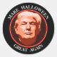 MAKE HALLOWEEN GREAT AGAIN is the text around the edge of this funny sticker. At the centre is an artist's portrait of President Donald Trump. The portrait is placed on a black background and framed in red. The text above and below the image is pale silver grey. All the text is easily customised, so you may make it say whatever you'd like. Funny for your Halloween correspondence, treat bags, or decorations, no matter which side of the aisle you sit on!