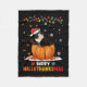 Funny Tuxedo Cat On Pumpkin Happy Hallothanksmas M Fleece Blanket